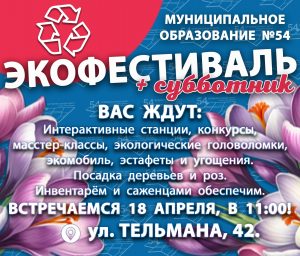 18 апреля в #МО54 состоится грандиозный ЭКОфестиваль (ул. Тельмана, 42),